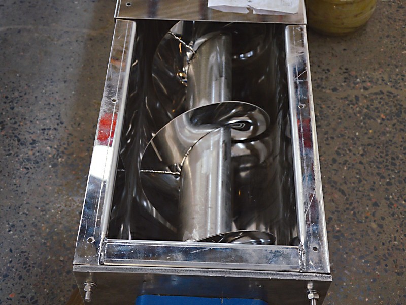 不锈钢U型螺旋输送机工作时,电机带动旋转的螺旋叶片将物料推移而进行输送,螺旋输送机旋转轴上焊的螺旋叶片,叶 片的面型根据输送物料的不同有实体面型、带式面型、叶片面型等型式。使物料不与螺旋输送机叶片一起旋转的力 是物料自身重量和螺旋输送机机壳对物料的摩擦阻力。